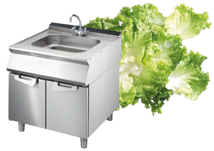 Neutral-Einheiten – Serie 700, alle Arbeitsflächen sind aus AISI 304 Edelstahl gefertigt. Ebenso sind Unterschränke mit abgerundeten Kanten erhältlich, um