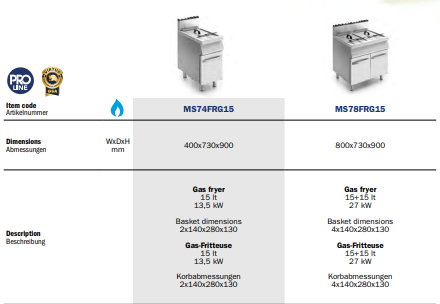Die Gasfritteusen des Modells Serie 700 sind in verschiedenen Ausführungen mit 13 und 17 Litern erhältlich. Dank der Wärmetauscherrohre im